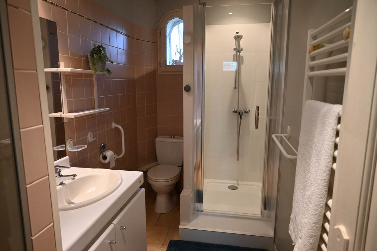 1 salle de bain avec douche et WC au rez-de-chaussée et 1 salle d'eau avec WC à l'étage.